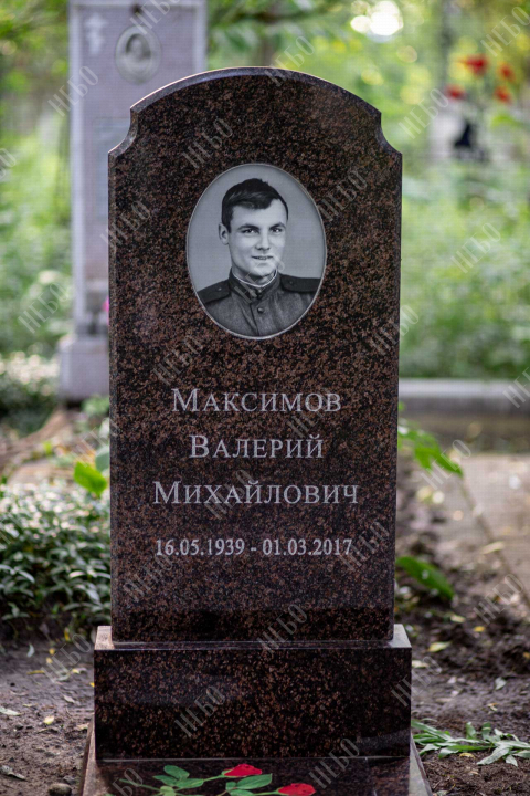Памятник без креста с вертикальной стелой и закрытым надгробием выполнен в классических темных оттенках. Стела ритуального изделия имеет аркообразный верх и фигурные углы. Закрытое надгробие ровное, без дополнительных элементов, что значительно упрощает уход за ритуальным изделием. Размеры памятника и соотношение объемов стелы к надгробию проработаны специалистами с учетом имеющейся нагрузки и визуального восприятия. Такой подход гарантирует долговечность и исключает искажения памятника.