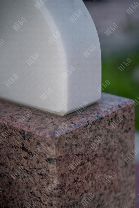 Христианский памятник с вертикальной фигурной стелой и закрытым надгробием выполнен с использованием декоративных элементов. Объемные розы белоснежного цвета, украшающие надгробную плиту, дополняют композицию ритуального изделия и отлично сочетаются с другими деталями памятника. Закрытое надгробие значительно упрощает уход за ритуальным изделием. Размеры памятника проработаны специалистами с учетом имеющейся нагрузки и визуального восприятия. Такой подход гарантирует долговечность и исключает искажения памятника.