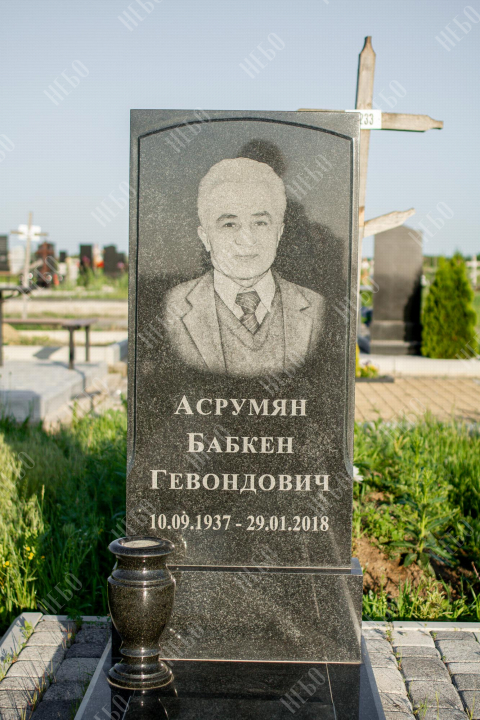 Для изготовления памятника использован гранит карельский габбро-диабаз. Это горная порода, отличающаяся прочностью и повышенной износостойкостью. Карельский габбро-диабаз устойчив к влаге и перепадам температур. Его плотность выше, чем у мрамора, поэтому именно его использовали при воздвижении вековых колонн исторических зданий. Гранитный памятник габбро-диабаз не требует особого ухода, обладает насыщенным черным цветом, что делает внешний вид памятника благородным и лаконичным.