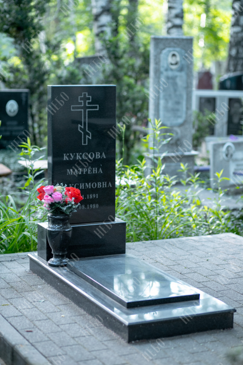 Данное ритуальное изделие изготовлено без изображения фотографии усопшего. Стелла памятника содержит изображение ангела и информацию о покойном, нанесение которой выполнено алмазными иглами на современном оборудовании. Использование технологии такой гравировки исключает любые деформации текста, он не подвержен стираемости и виден в любую погоду. Данный памятник служит отличным примером тому, что и без нанесения фотографии ритуальное изделие может выглядеть достойно и презентабельно, соответствуя всем религиозным канонам.